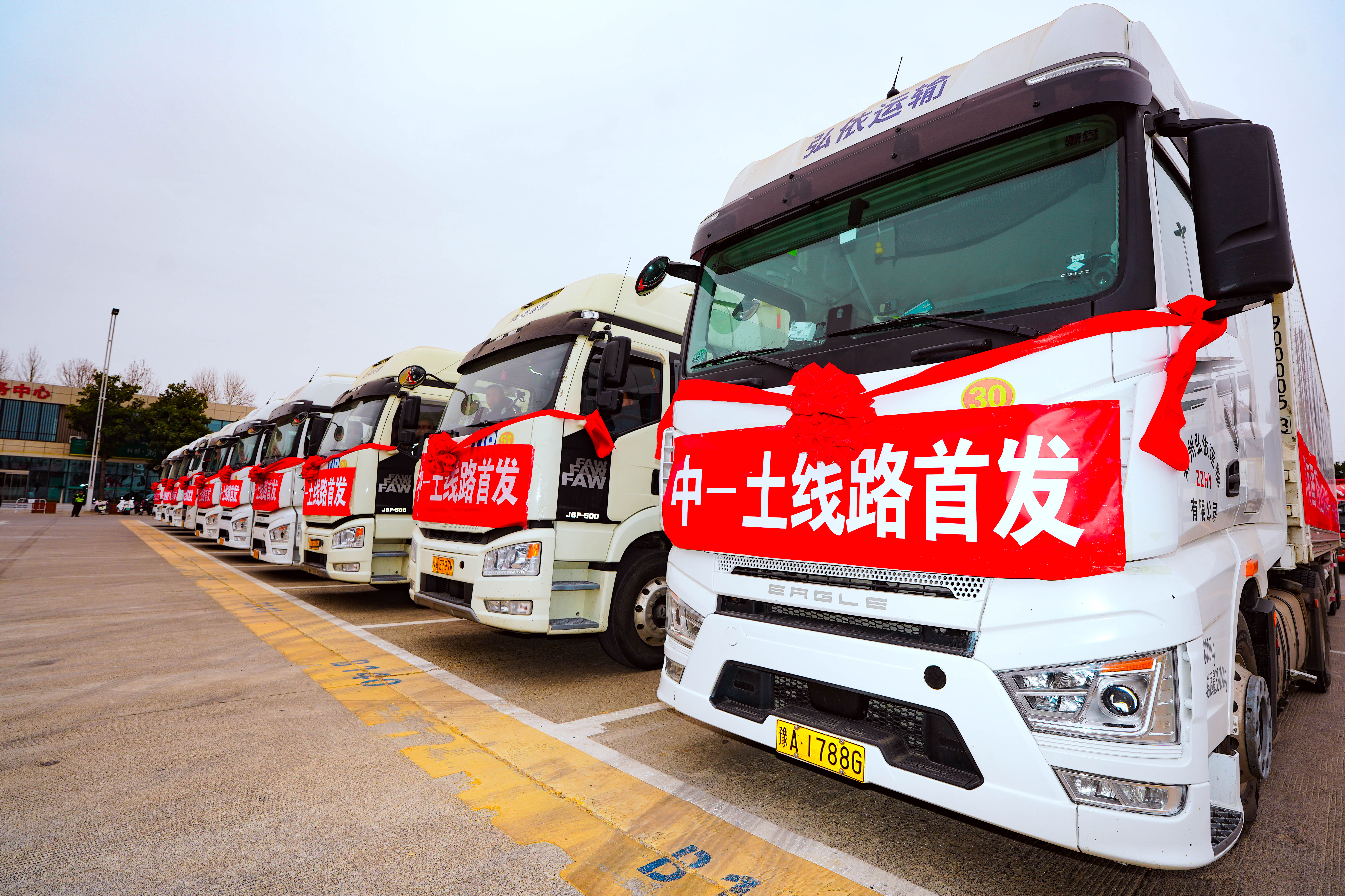 2月20日,满载办公用品的TIR运输车辆,在郑州海关所属新郑海关的监管下从国际公路运输河南集结中心驶出,开往土库曼斯坦首都阿什哈巴德,这标志着“郑州—阿什哈巴德”TIR运输线路正式开通。