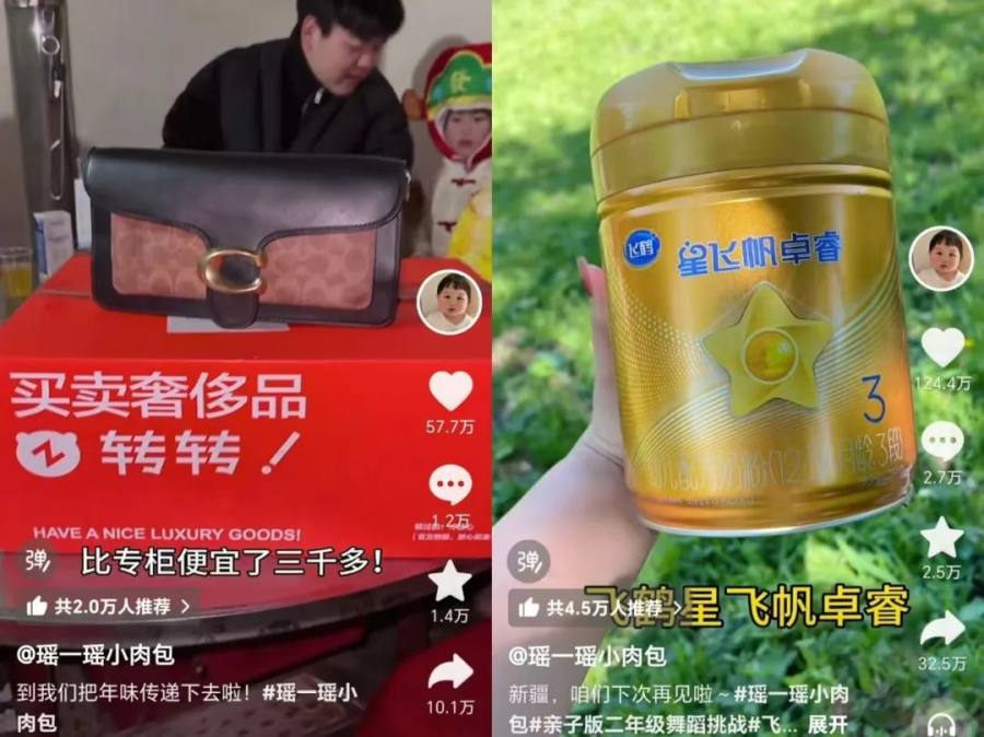另一头,有网友扒出“瑶一瑶小肉包”账号在近三个月内通过广告视频带货达6则,以第三方数据平台提供的账号广告均价55万来算,收入或超240万元。