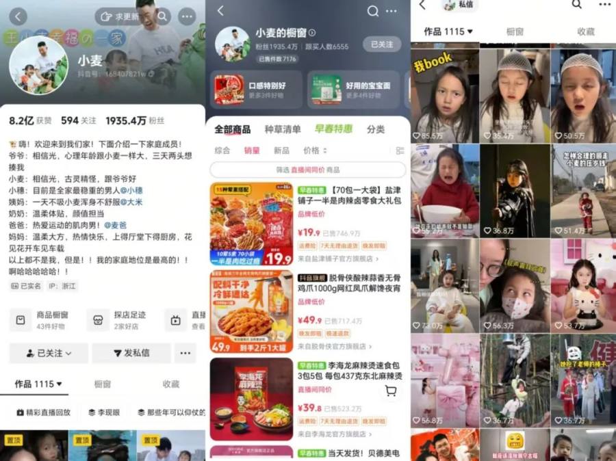 同样年仅四岁圈粉上千万的萌娃网红“小麦”,当前在抖音账号粉丝达到1935.3万,王小麦的视频风格也是以搞笑日常分享为主,靠着脑回路异常的表现,且十分社牛的表达力,以及兴趣爱好丰富的日常生活片段,王小麦也被不少网友视作“国民闺女”、“互联网女儿”。