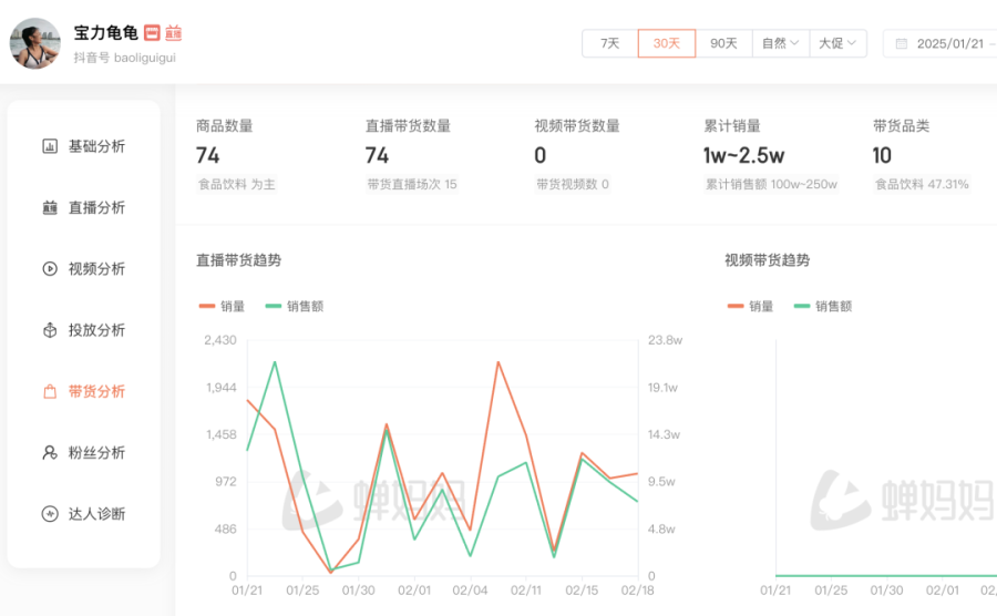 以SASA丸子妹和宝力龟龟账号为例,除了广告视频植入外,其父母均打造直播间进行带货。SASA丸子妹的商业变现直接转交到了“我是丸子妈”的账号中。同时据蝉妈妈数据显示,宝力龟龟在近三十日内带货15场,累计销售额达到了100万-250万,其带货品类主要以食品、珠宝饰品、厨卫家电等。以此为均值测算,仅带货侧每年收入就有望超过300万。