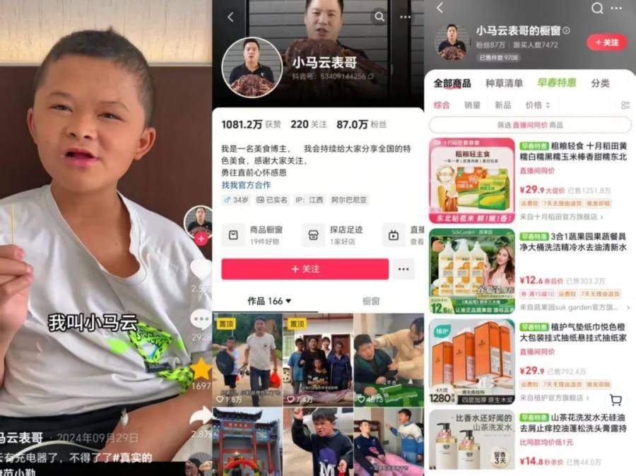 早在2015年火爆全网的小马云范小勤,起初因为与马云长得很像,在网上爆火被成为“小马云”,但随着流量淡去,小马云逐渐销声匿迹。再次回到大众面前,小马云换了个马甲以“小马云表哥”的账号出现,当前其账号粉丝达到了87万由小马云家里人代为运营。据了解,该账号此前名为“老范竹木工”,团队是小马云的远房亲戚黄新龙和村里几个人合伙经营。账号内容也多以剧情演绎为主,不过长大后的“小马云”俨然已经没了当初的流量。