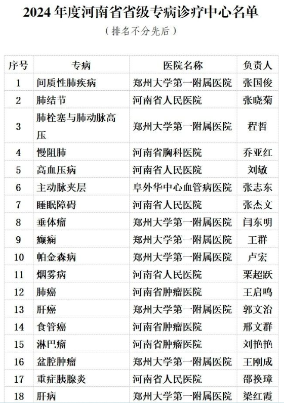 河南省级专病诊疗中心名单“出炉”