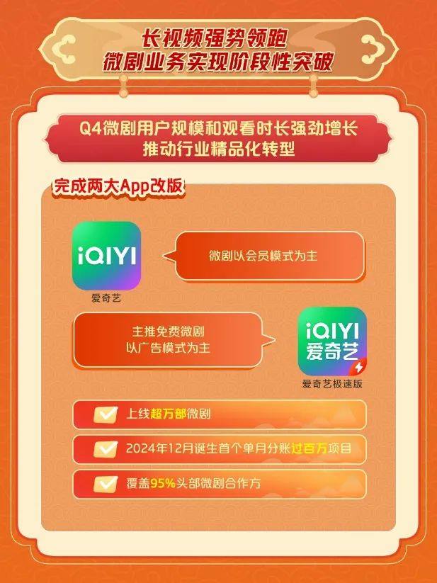 然而,爱奇艺刚刚发布的2024年第四季度及全年财报,以及对新增长机会所做的陈述,似乎提供了一种非零和博弈的思路:长视频内容和微短剧,无论在商业模式上还是用户偏好上,都有办法找到和谐共生的方法。关键在于,对市场要有足够的了解。