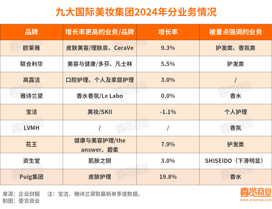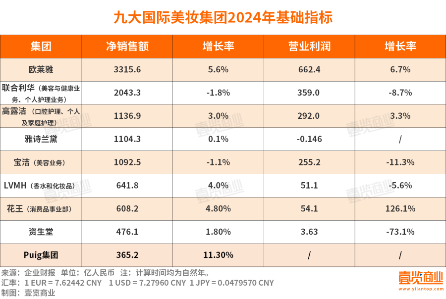 值得注意的是,相较同行,欧莱雅交出的2024年财报已经算“矮子里拔高个”。近日,包括雅诗兰黛、高露洁、资生堂在内的九大国际美妆集团陆续发布2024年财报,数据中透出的增长乏力,无一例外。