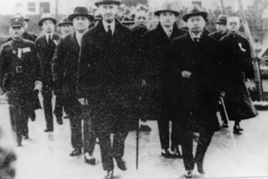 出席“巴黎和会”的中国代表,前排左二为顾维钧