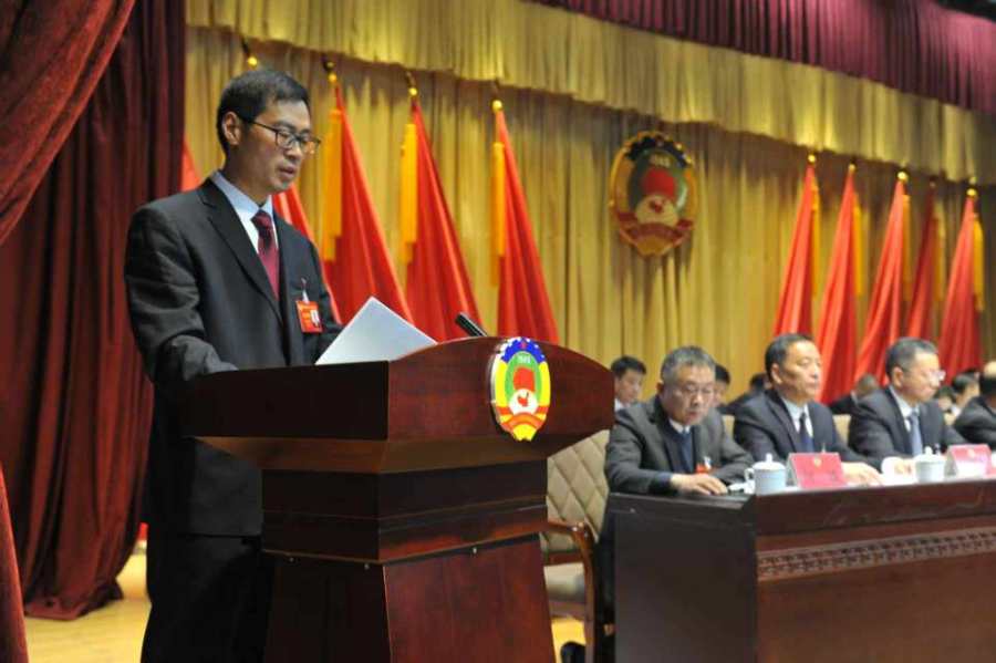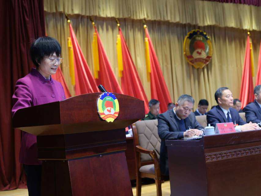 中牟县政协主席孙梅代表政协中牟县第十一届委员会常务委员会作工作报告。