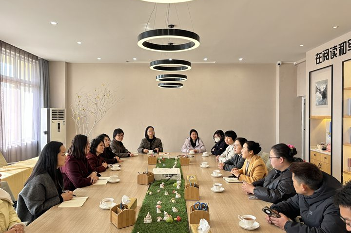 随后,一行人齐聚会议室,共话教育的温度。刘校长具体介绍了学校四季课程体系的架构,教导主任郭燕辉就学校的教学策略和阅读的做法进行分享。