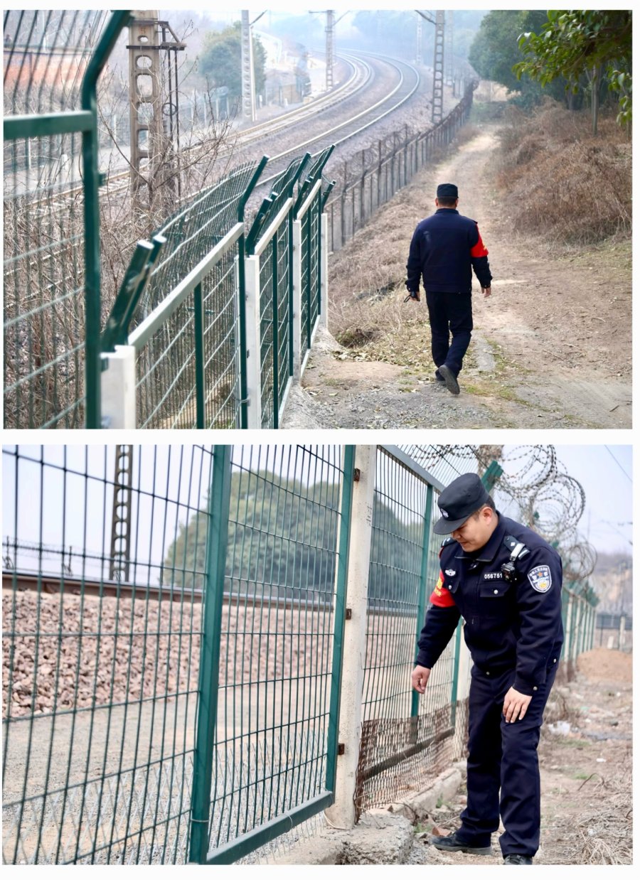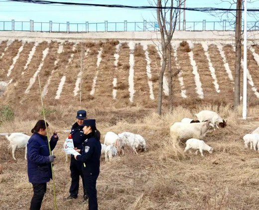 遥望遍野,羊群结对。三年前线路发生的一起进羊事故仍像是在眼前,线路的安全决不能掉以轻心。转眼又到了羊群枯草时节。冬天草越来越少了,许多养殖户都把羊群赶到了更靠近铁路线的地方。“我们要加大对铁路沿线养殖户安全宣传和巡查力度,这是对铁路安全的保证,也是对养殖户利益的负责”,多看多想多问多说,这是小叶警官给我传授的独门秘诀。“你看,这边有新鲜的羊粪,说明附近一定有羊群。”小叶警官说完带我走进了线路边的山坡上,正是这一走,发现了一只落单的小羊正在护网边用力地挤着。面对养殖户的感谢,小叶警官不断提醒他一定要看好自己的羊群,不仅仅是为了自己利益,更是为了列车行驶的安全。