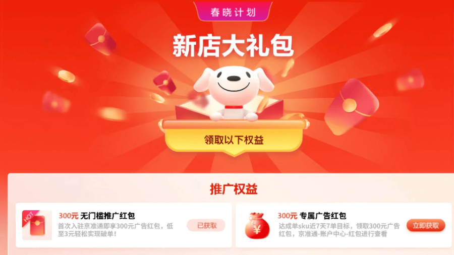 第三步:上专属活动,加速爆单。今年,京东为新商家开辟了专属的活动机制,新店铺只需7天完成7单销售,即可在京麦后台报名参加京东秒杀的新店专属活动,同时将获得搜推冷启扶持。值得注意的是,符合以上条件的新商家还可再解锁300元广告红包,用于站内推广。京东表示,通过这一系列扶持措施,新商家有望实现流量平均百倍提升,助力销售爆发式增长。