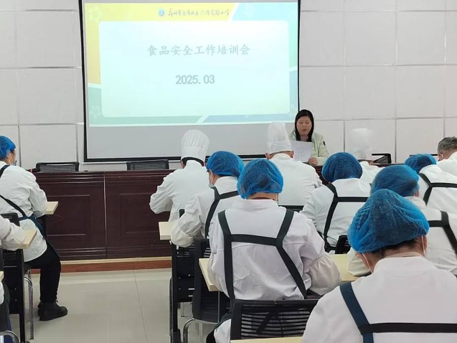 为进一步加强学校食堂卫生安全工作,提高学校食堂管理和从业人员的食品安全责任意识,确保师生身体健康,3月4日,惠济区长兴路实验小学对食堂从业人员进行培训。