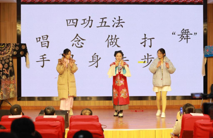 开幕式上,河南省京剧艺术中心的国家级演员纷纷登台亮相,《红娘》《淮河营》《龙凤呈祥》等京剧选段精彩的演绎,让我校学子感受到了京剧艺术的独特魅力。河南财政金融学院大学生艺术团带来的歌曲《男孩》、拉丁舞表演《舞动青春》,将现代艺术与传统艺术完美融合,展现了青春活力。京剧演员还介绍了京剧行当、表演特征等京剧基础知识,并进行唱腔、身段的体验式教学,同学纷纷举手上台参与,体验京剧的独特魅力。