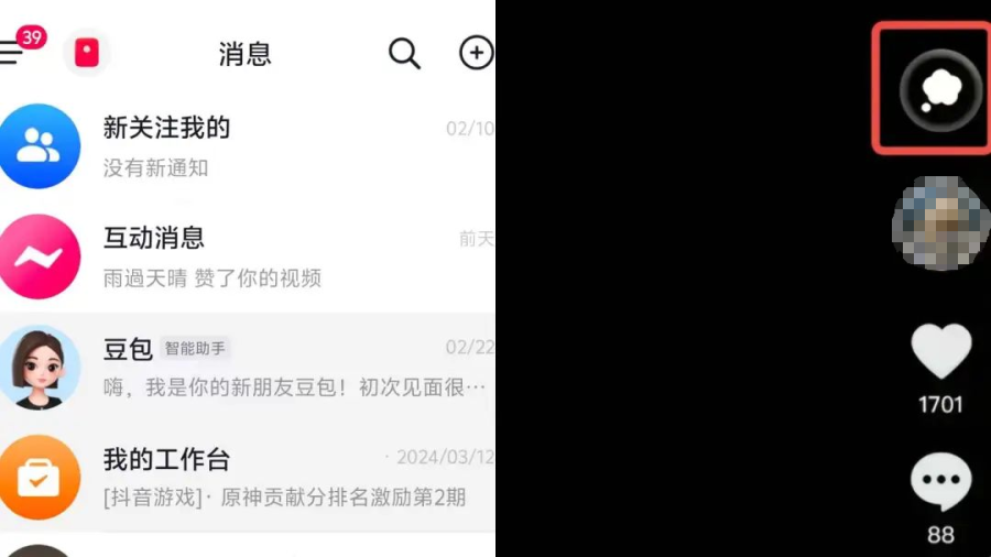 据Tech星球消息,近日抖音App开始测试接入豆包App的AI功能,并在抖音内为豆包App提供了两个显著入口:一个位于短视频界面,与点赞、评论、转发等功能并列,另一个则设在消息列表。