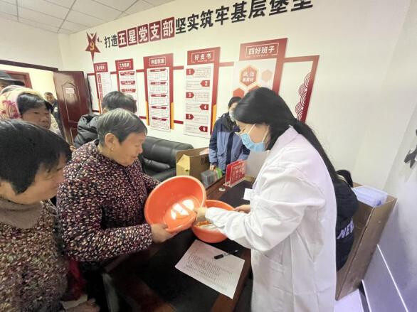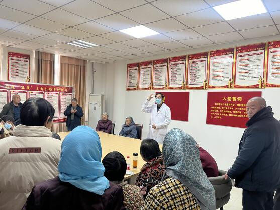 活动现场,前来咨询的村民络绎不绝,场面热烈而有序。我校教师党员和吉瑞路社区卫生服务中心的医护人员为村民们提供了三大类服务:一是免费测量血压、血糖,二是中医特色的耳穴贴和针灸治疗,三是针对慢性病的用药指导和健康咨询。每一项服务都贴近村民的实际需求,受到了大家的热烈欢迎。特别是第一教工党支部成员李江博士,他用通俗易懂的语言为现场群众深入浅出地讲解了心脑血管疾病的预防和规范治疗,如心绞痛、高血压等常见疾病的自我保健方法。李博士的讲解既专业又实用,让村民们受益匪浅,他们纷纷表示要将这些健康知识应用到日常生活中,积极预防和控制疾病的发生。此外,活动还为村民们准备了精心挑选的生活用品作为礼物,这些贴心的举措让村民们在寒冷的初春感受到了来自社会的关怀与温暖。