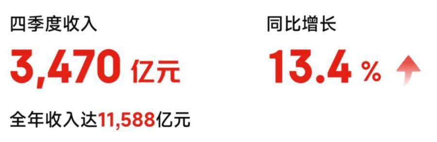 财报显示,京东集团2024年第四季度的收入为3469.86亿元,较2023年同期的3060.77亿元增长13.4%,增长势头超出市场预期,并达到了近9个季度以来的增速新高,业绩成长韧劲十足。