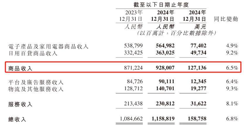 一直以来,京东集团的业绩增长都离不开商品与服务的双轮驱动。在商品销售领域,京东2024年四季度的商品收入同比增长14.0%至2809.78亿元;全年收入达到9280.07亿元,较2023年的8712.24亿元有所提升,增幅约为6.5%。
