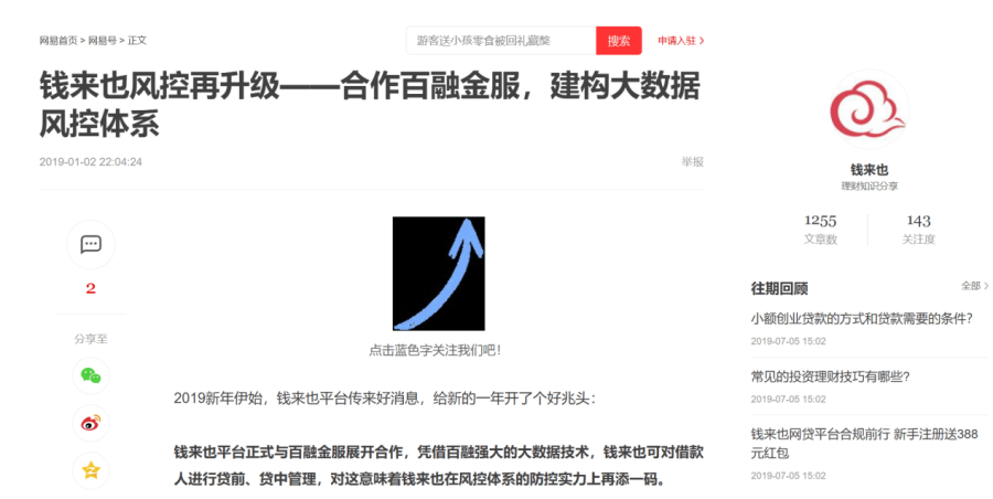 如今,百融云创已经不再提及那个P2P如火如荼的年代,但可以肯定的是,彼时百融云创与P2P平台形成了紧密的联系。比如,一家名为“钱来也”的平台宣布风控升级,合作机构正是百融云创的前身百融金服。而这家P2P平台目前已经悄然消失。