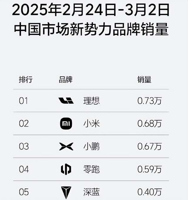3月4日,理想汽车发布最新周销量榜,小鹏排在第三,为0.67万辆。在步入2025年后,小鹏一直稳居前三甲,并且更多时间与理想交替拿第一。