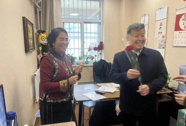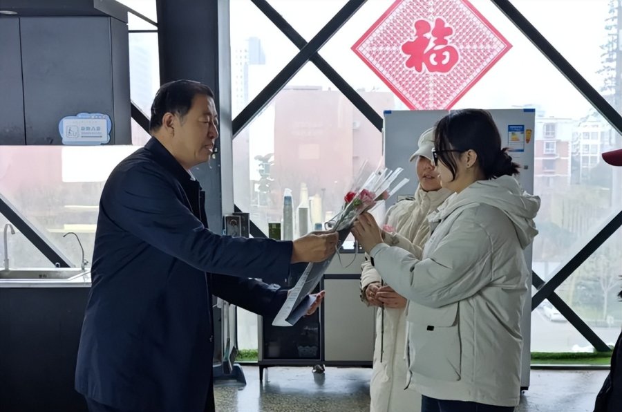 3 月7日下午,运城龙翔教育集团党组书记、副总裁、常务校长景建利,集团副校长史林奎,集团督审总监平经管分别前往龙翔集团行政各处室、产教研究院、好课堂以及元龙科技,亲切慰问了在岗女职工,为她们送上了节日的慰问与真挚祝福。