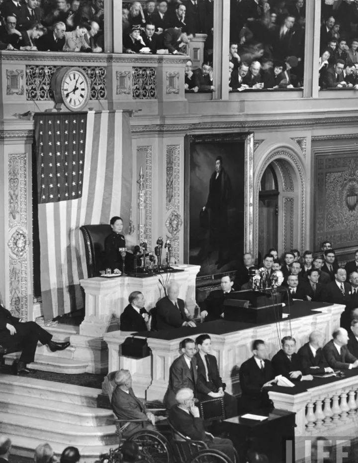 宋美龄的宣传努力——据说有25万美国人听过她的演说——使得美国朝野和公众相信蒋介石领导的国民政府,相信蒋委员长确是为自由与日本毒龙奋战的圣乔治,从而为中国争取到更多的美援。