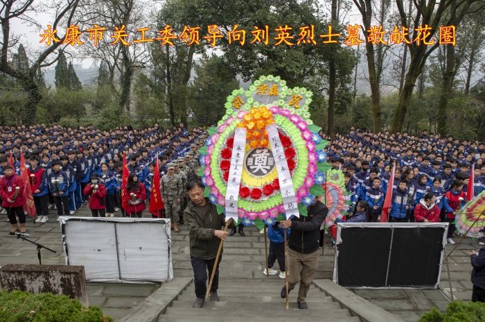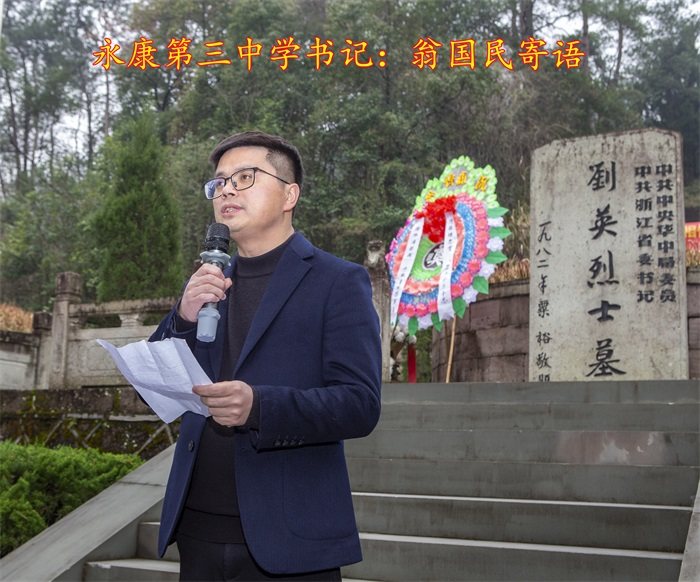 关工委领导、学生代表分别向刘英等革命烈士敬献花圈、默哀悼念。然后,永康三中书记翁国民寄语学生;希望大家缅怀先烈,不忘历史,感恩祖国、感恩中国共产党、感恩父母、感恩老师。每一位同学都有复兴中华民族的责任和担当。要努力学习,学习文化知识和为人处世,成为一名新时代的好少年!