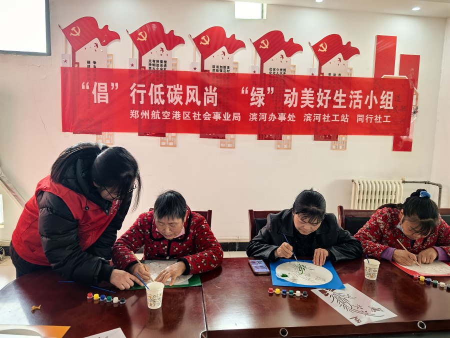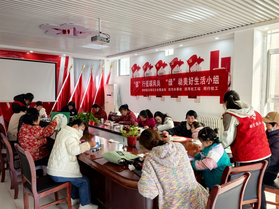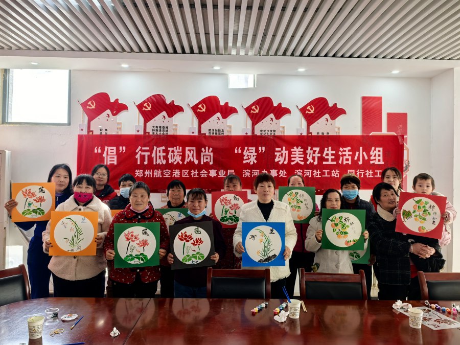 3月12日,在郑州航空港区社会事业局和滨河办事处的指导下,滨河社工站联合营河社区开展“倡”行低碳风尚,“绿”动美好生活小组第四节—“妙笔绘心韵 色彩连邻里”活动。进一步丰富了辖区居民的精神文化生活,提升了居民的艺术修养和审美能力。
