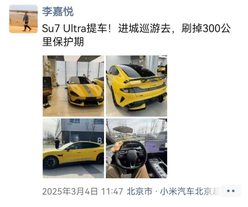 在新能源汽车领域,成色好、公里数少的小米SU7 Max创始版,在二手市场的售价基本都能维持在28万-29万元左右,保值率比特斯拉还高。作为租赁公司的老板,李嘉悦甚至自己也提了一辆SU7 Ultra,晒在了朋友圈。