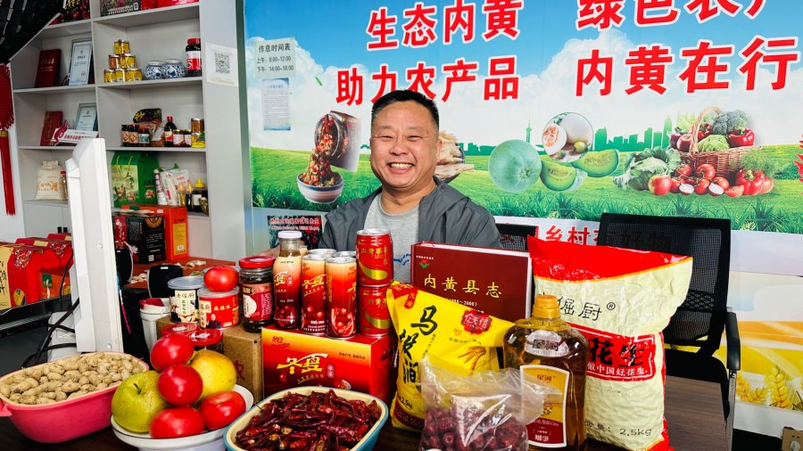 随着直播经验丰富,何艳军不满足于只卖店集村农产品。他以党建为引领,将直播间搬到周边小黄滩村的娃娃菜基地、六村乡的水果玉米基地、县农博园的西红柿种植基地,还把老倔厨多味花生、鲜辣椒酱、豆豉酱、冬夏枣茶、黑豆腐竹、星河花生油等内黄土特产推向县外、省外市场。