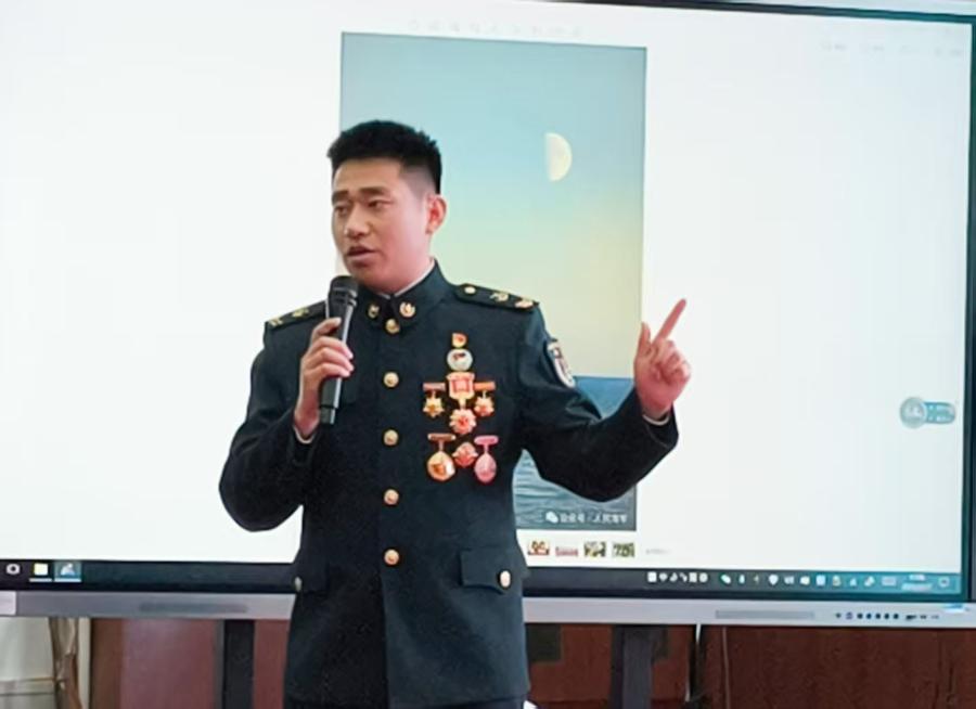 此次活动的评委阵容也十分强大,特别邀请了曾服役于北海舰队海军驱逐舰第一支队的退役军人王展超。他先后参加过70次演习任务,有着丰富的军旅经历和卓越的功绩。当王展超身着军装,胸前佩戴着多个荣誉勋章,英姿飒爽地登上演讲台时,台下的学生们瞬间被他的军人风采所吸引,眼中满是崇拜,惊叹声此起彼伏。这就是军人的荣耀,这一枚枚勋章承载着他们的热血与奉献,蕴含着强大的精神力量,让孩子们真切感受到了军人的伟大与崇高。