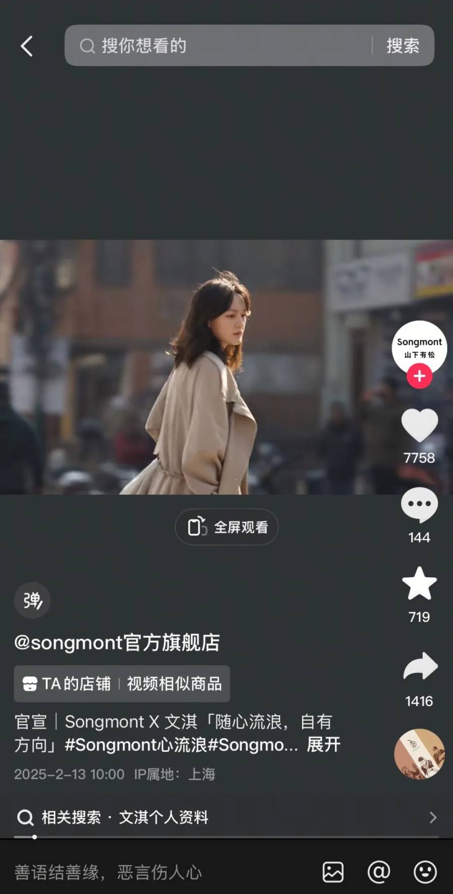 与文淇的合作,彻底将山下有松Songmont带火了。