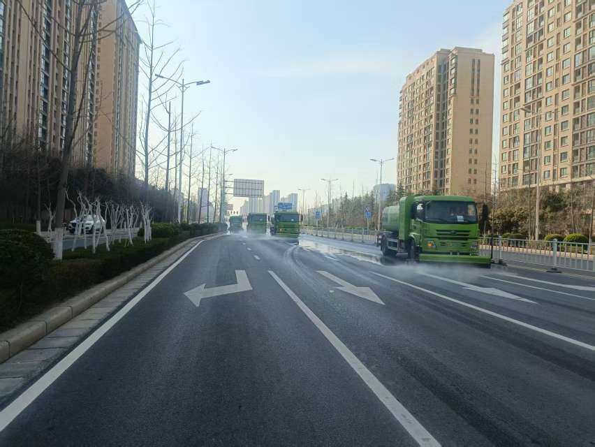 破晓时分,由高压冲洗车、多功能洗扫车组成的机械化作业车队率先“出征”。面对太湖路、相州街、雍州路等交通干道车流量大、积尘顽固的难题,采取“高压冲洗+洗扫一体”的联动作业模式。高压冲洗车以扇形强劲水柱直逼路面缝隙,进行深度冲刷,将隐匿其中的污垢彻底“揪出”。洗扫车则默契跟进,同步完成污水回收和碎屑清扫,不给污渍留一丝“喘息”机会。经过连续奋战,累计清洗路面达10公里,原本模糊的道路标线重焕清晰,如同为城市道路重新勾勒出鲜明轮廓。