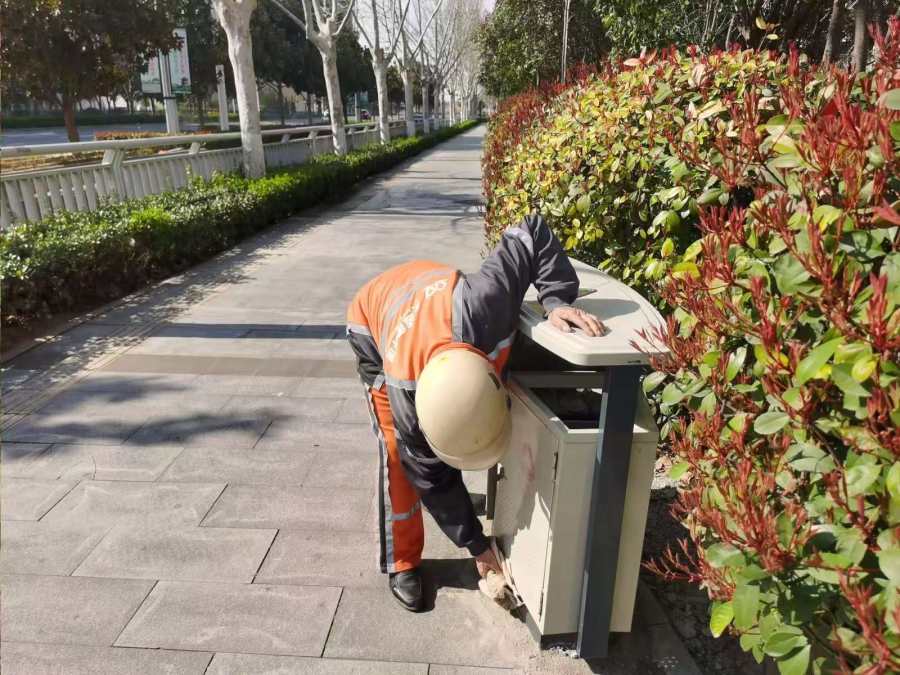 在机械作业有序推进的同时,人工清扫团队也不甘示弱,紧密配合。环卫工人手持各类清洁工具,化身“城市美容师”,针对机械难以触及的死角、路边石缝隙等区域,展开细致入微的清理。在餐饮集中区域,面对地面油污这一“顽固敌人”,他们采用生物降解清洁剂配合高温蒸汽设备,发起无死角的“围剿”,反复刷洗,直至油污彻底消失不见。清洗广告牌和果皮箱时,环卫工人先用高压水枪进行初步冲洗,冲去表面浮尘,再用干净的抹布仔细擦拭每一处边角,不放过任何一个污渍点,确保每一处都光亮如新,在街头形成一道别样的风景。