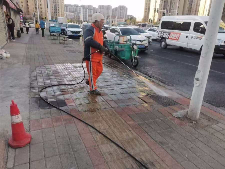 滨河办事处人机协同深度清洁,辖区环境颜值飙升