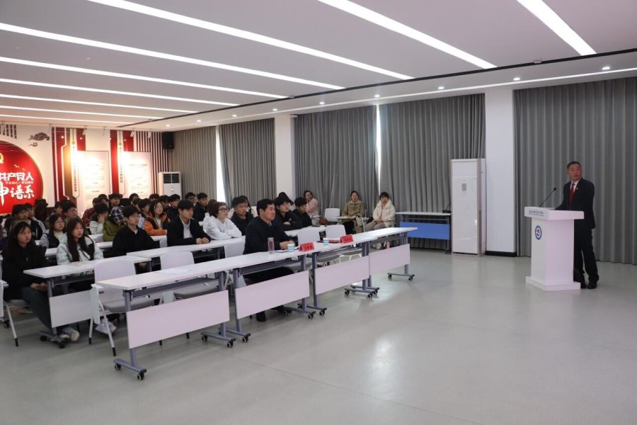 3月19日下午,河南省高校思政课名师苏新留工作室在大学生思想政治教育基地举行“驿马”讲堂首场报告会,汝南县人民法院政治部副主任张继光受邀担任主讲嘉宾,为全校师生带来一场主题为“青春勇担新使命,志愿服务正当时”的新时代文明实践学雷锋志愿服务宣讲。河南省高校思政课名师苏新留工作室负责人、驻马店职业技术学院党委书记苏新留出席活动,马克思主义学院院长李菊蕾,思政课教师代表,学生代表参加活动。
