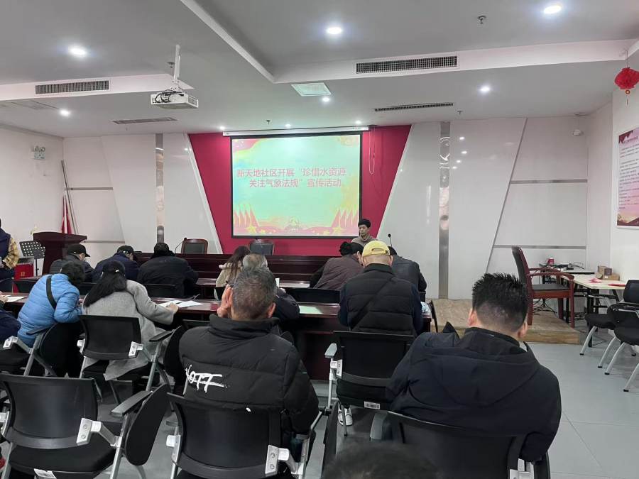 活动伊始,社区向辖区商户、居民普及气象灾害防御知识。通过互动问答形式,增强居民对气象法规的理解和记忆。倡导大家从自身做起,践行节水行动,关注气象法规。随后,“绿城妈妈”志愿者普及水资源的重要,传授日常节水小妙招,增强节水意识,提升防灾减灾能力。