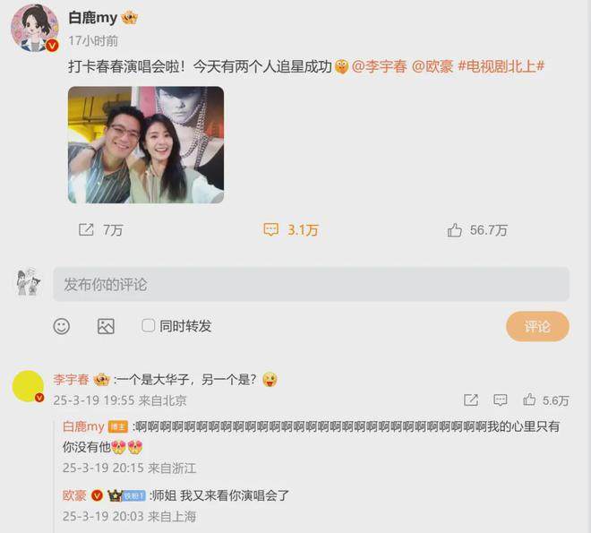 “太羡慕华子了年纪轻轻就追星成功!”