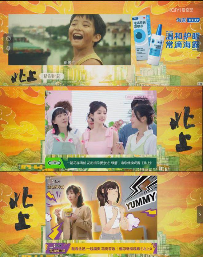 名家IP穿透代际的广泛影响力,对国民品牌具有重要战略价值。《北上》浓厚的家庭集体追剧氛围下,海露、康师傅、绿箭等一众高国民度品牌也得以结合不同人群诉求,找到更精准的植入切口。