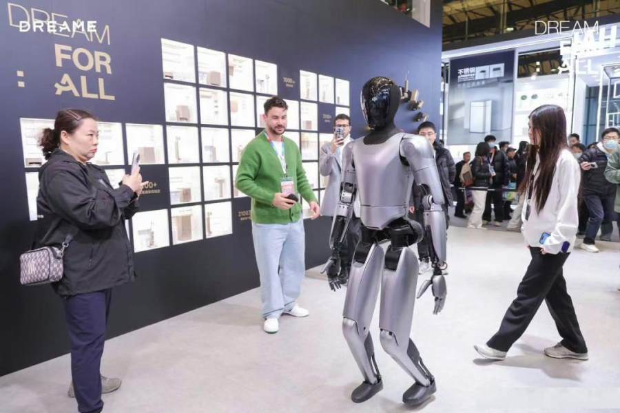 2023年世界机器人大会现场,追觅科技推出身高178cm、体重56kg的人形机器人,且展示了咖啡拉花技艺,也预示着追觅正式进入机器人通用性方面探索。