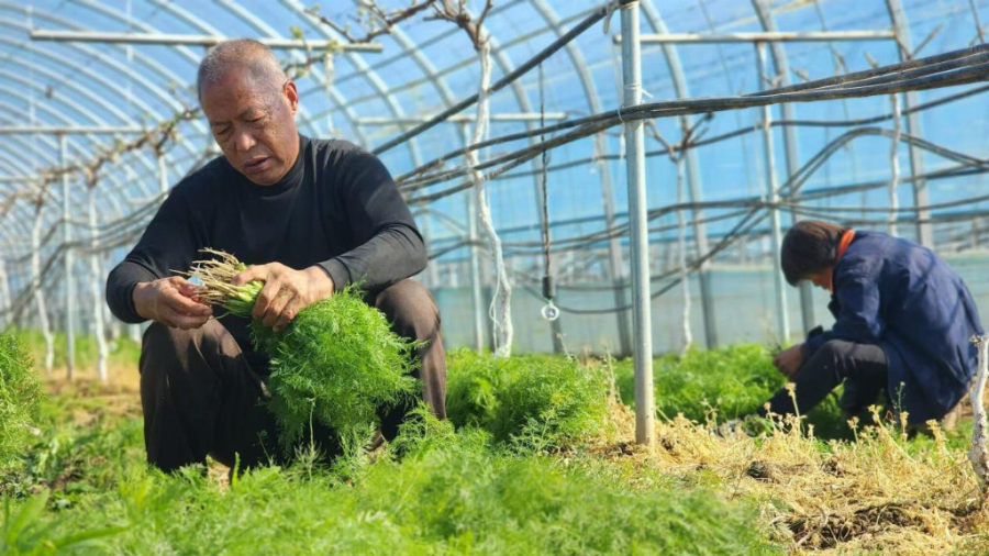 在小茴香菜种植大棚里,白营村党支部书记白中龙一边帮助群众采收,一边算起了收入账:“咱的蔬菜大棚可以全年不间断地供应瓜果蔬菜,水萝卜、小茴香菜、红苋菜、荠菜、葡萄都能供应,一个大棚一年能带动村民增收2万元左右。”
