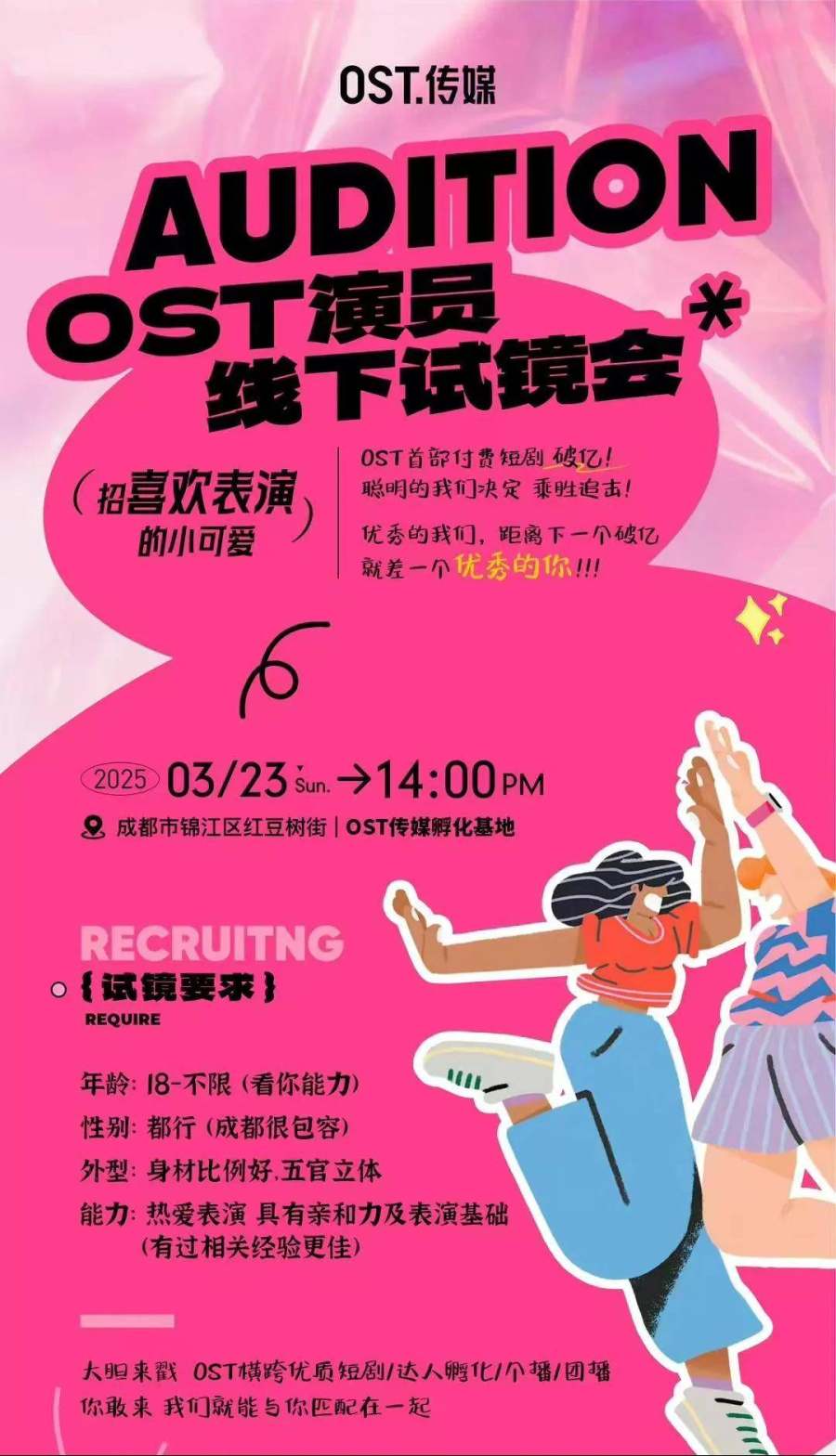 相比起纯签约成熟短剧演员,OST传媒的链条要更长一些,他们划分出单独的短剧演员经纪业务,从新人试戏选拔到演员培养再到出演公司项目,构建了从新人到成熟演员的上升全链条。
