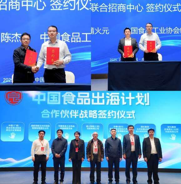 为发挥协会平台优势,有效服务政府与企业,中国食品工业协会经销商工作委员会与泰兴市农产品加工园区、遂溪县签署协议,联合共建招商中心,搭平台促招商;与各自贸区、企业签署中国食品出海战略合作伙伴协议,携手食品企业出海。
