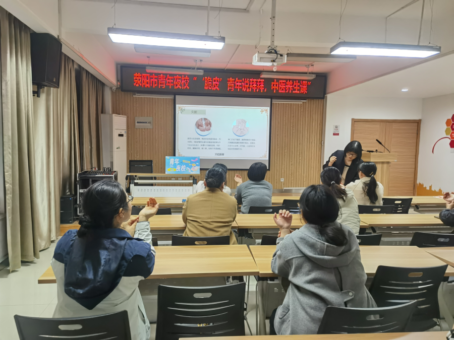 荥阳市豫龙街道宁山社区青年夜校中医养生课开讲!
