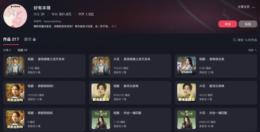 2024年,柠萌的短剧业务快速扩张。旗下短剧子公司“好有本领”在2023年推出8部作品,2024年共计推出42部作品,包括31部付费短剧和11部免费短剧。根据业绩公告,柠萌2024年累计生产短剧六千分钟,同比增长5倍,C端充值金额超人民币千万元。