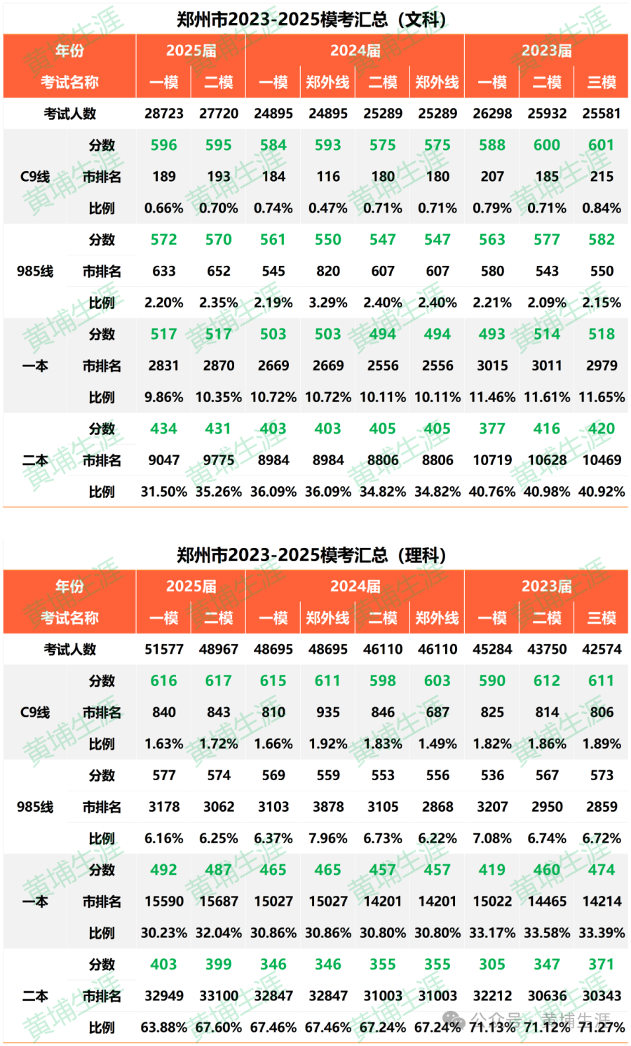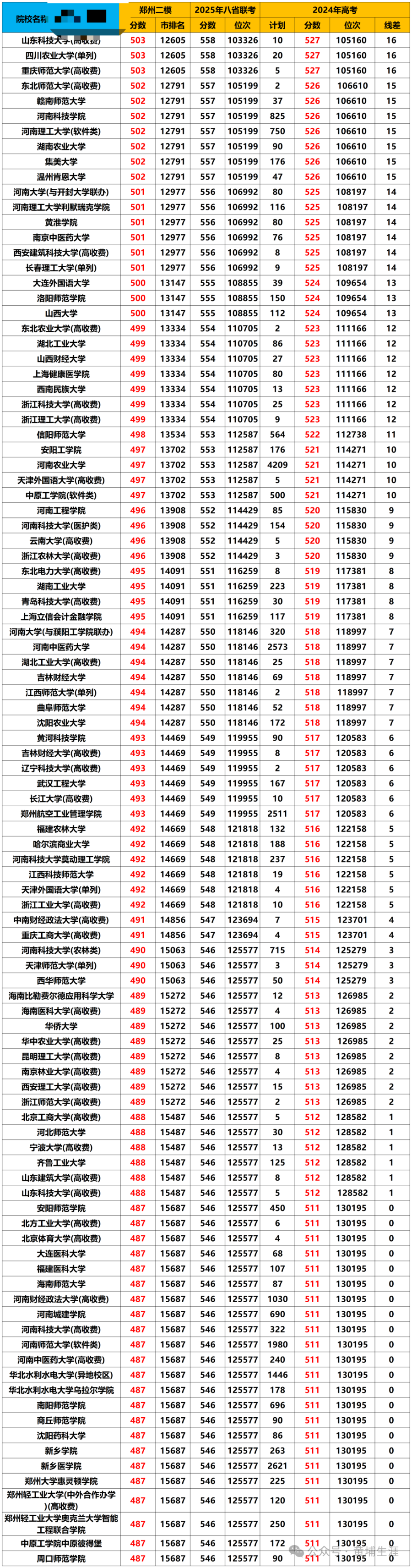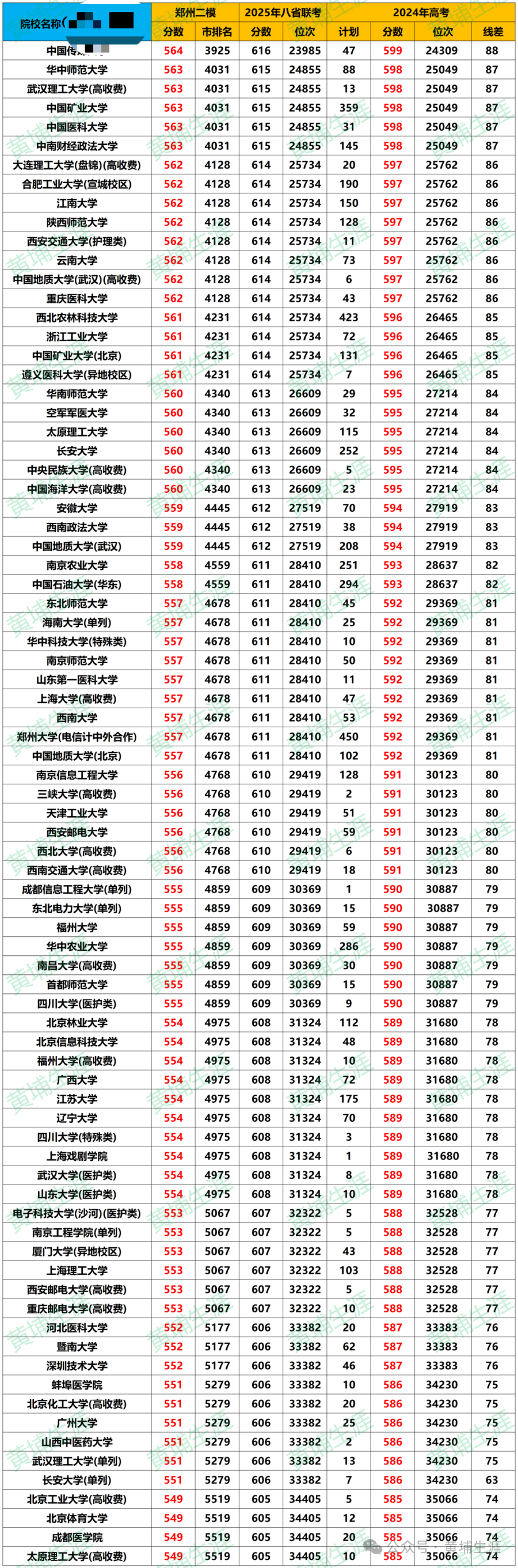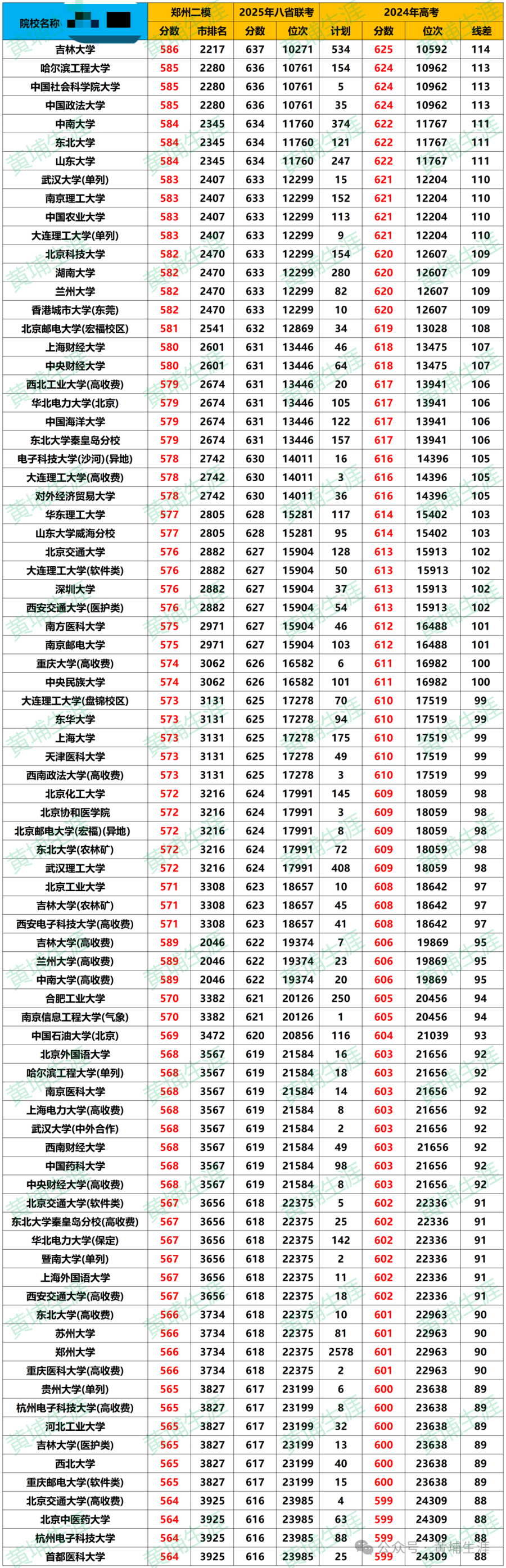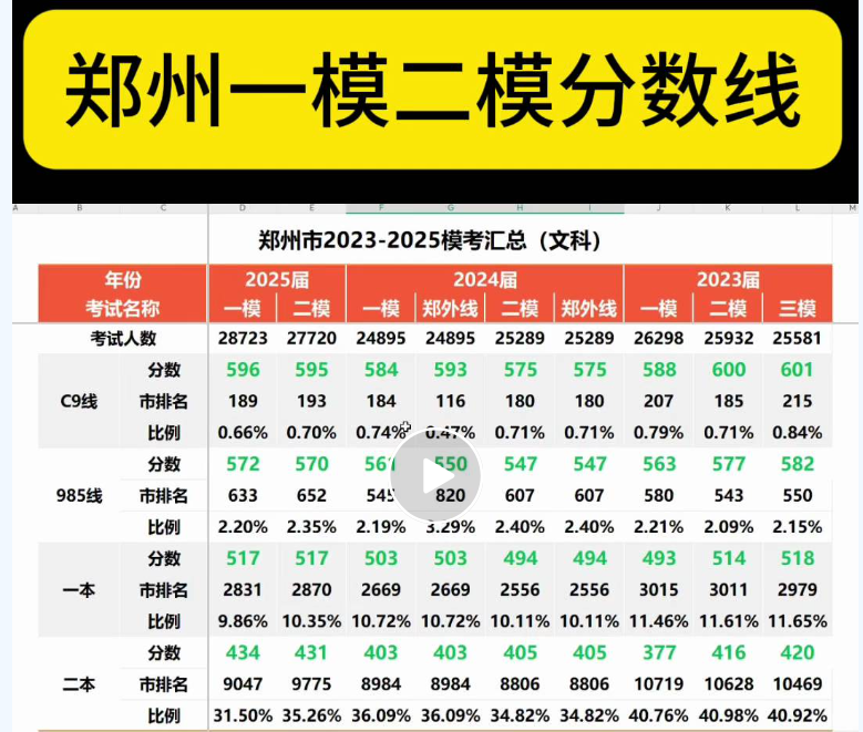 2025年郑州二模分数线与高考排名对应表及二模成绩能上哪些大学?
