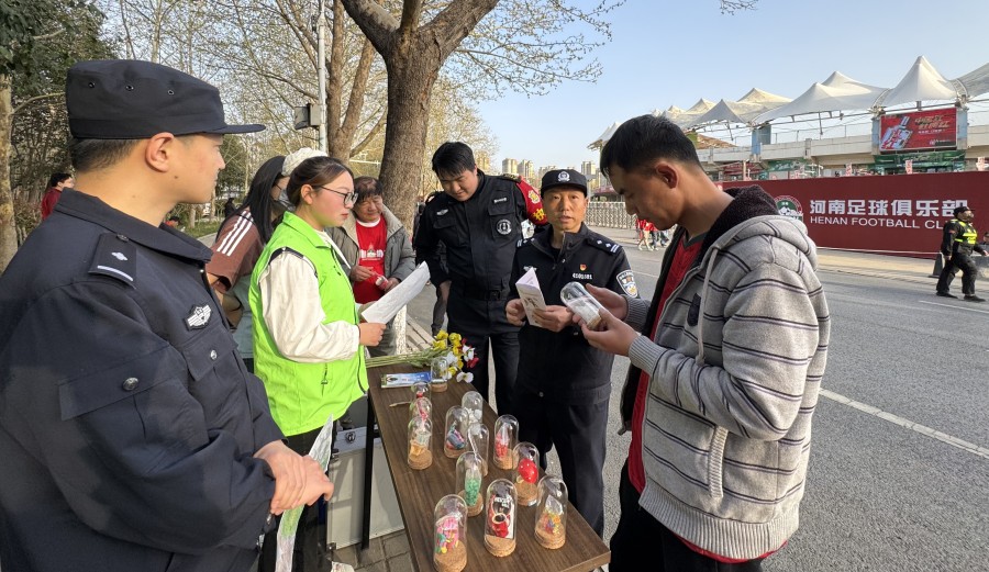 为进一步深化全民禁毒教育工作,创新禁毒宣传形式,将禁毒宣传与足球运动相结合,通过活力四射的绿茵场传递“健康人生,绿色无毒”的禁毒理念。4月1日,在郑州市公安局禁毒支队的指导下,经开分局禁毒大队联合白庙强制隔离戒毒所组织舜华禁毒社工走进航海体育场开展禁毒宣传警示教育活动。