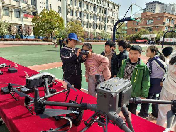 最吸引学生目光的当属无人机体验区。在技术人员的操控下,无人机如一只灵动的雄鹰,轻盈地起飞,在空中做出各种高难度动作,时而盘旋上升,时而急速俯冲,时而悬停半空。同学们的目光紧紧追随着无人机的轨迹,惊叹声此起彼伏。