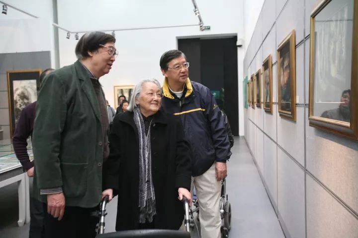 在陈列冯先生绘画与文学作品的“大树画馆”,冯先生与弟弟陪母亲漫步。
