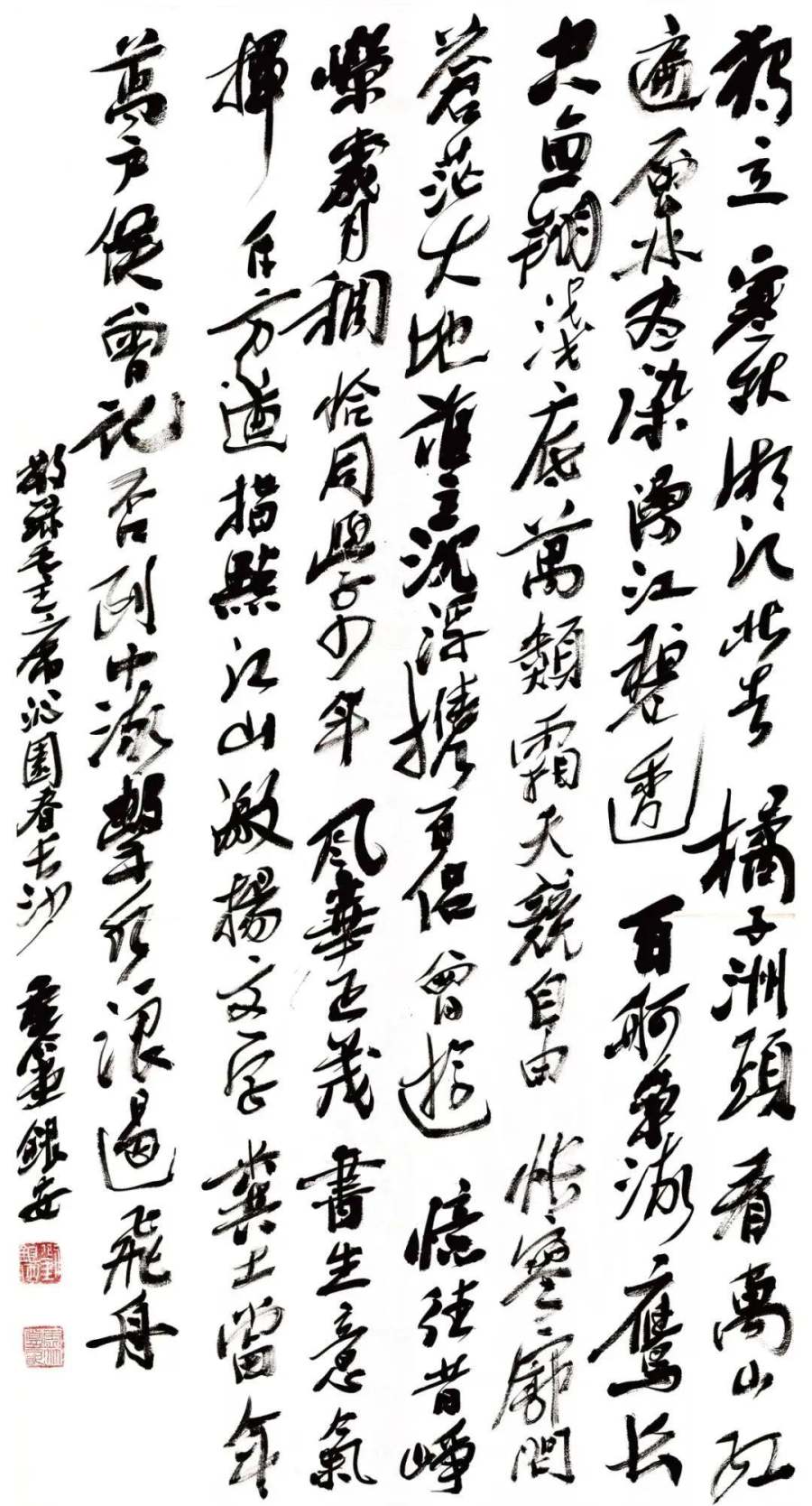 我曾在十年前,写过一篇关于刘银安的短文《鬼才刘银安》,题目看上去有些夸张,但基本符合我对刘银安的印象。到今天我依然认为,刘银安在书法创作上,既古既今,自由任性,有其独立、独到的一面。时至今日,他已是书法创作的驾驭者,也就是说,刘银安的书法,已具备了显著的个人风骨、气韵,独占一片天地。