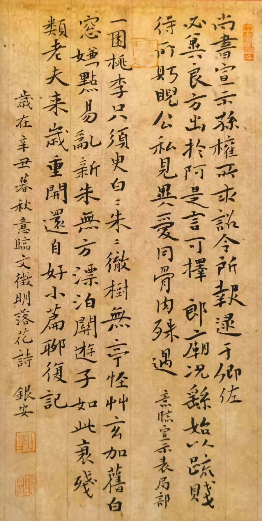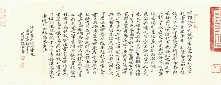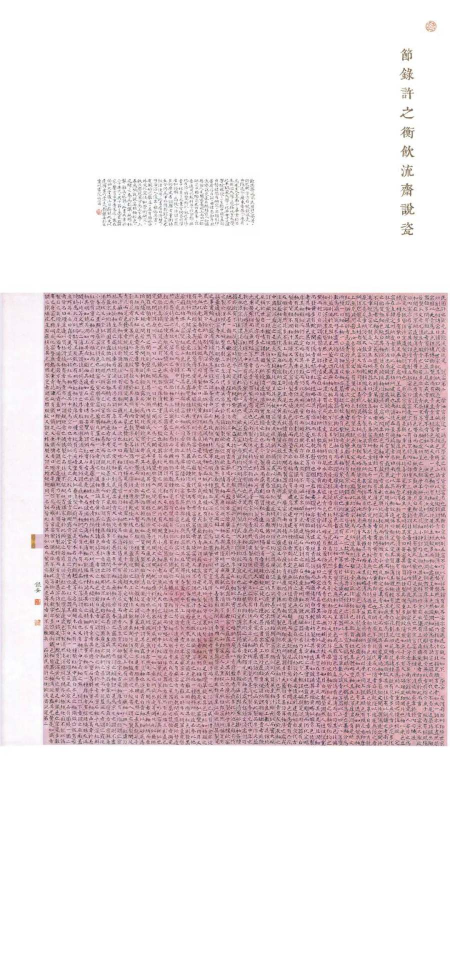 近年来,刘银安开始有意训练写小字,居然写出了乐趣,几乎上瘾。由此,他改变了过去读古人法帖的习惯,不仅要认真对待法帖中的大字,还要认真琢磨法帖中的小字。他发现,一些古今大书家、大画家的落款题字,十分迷人,虽是绳头小楷,却字好味足,生动传神,看之喜欢,品之陶醉。