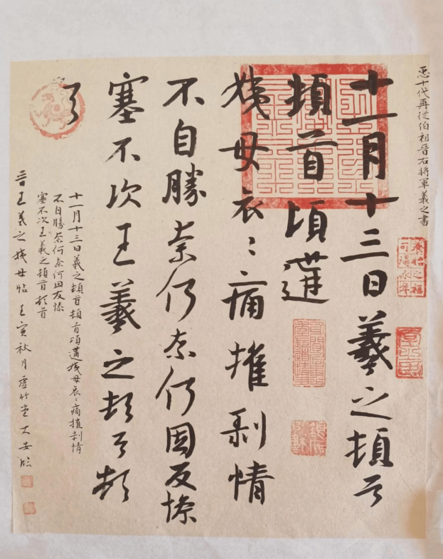 再看靠墙处,宣纸整摞整摞摆放着,写废的宣纸同样整摞整摞堆放着;宽大的红木书案上是成批的印章,名章、闲章,各种材质、各式各样,应有尽有。
