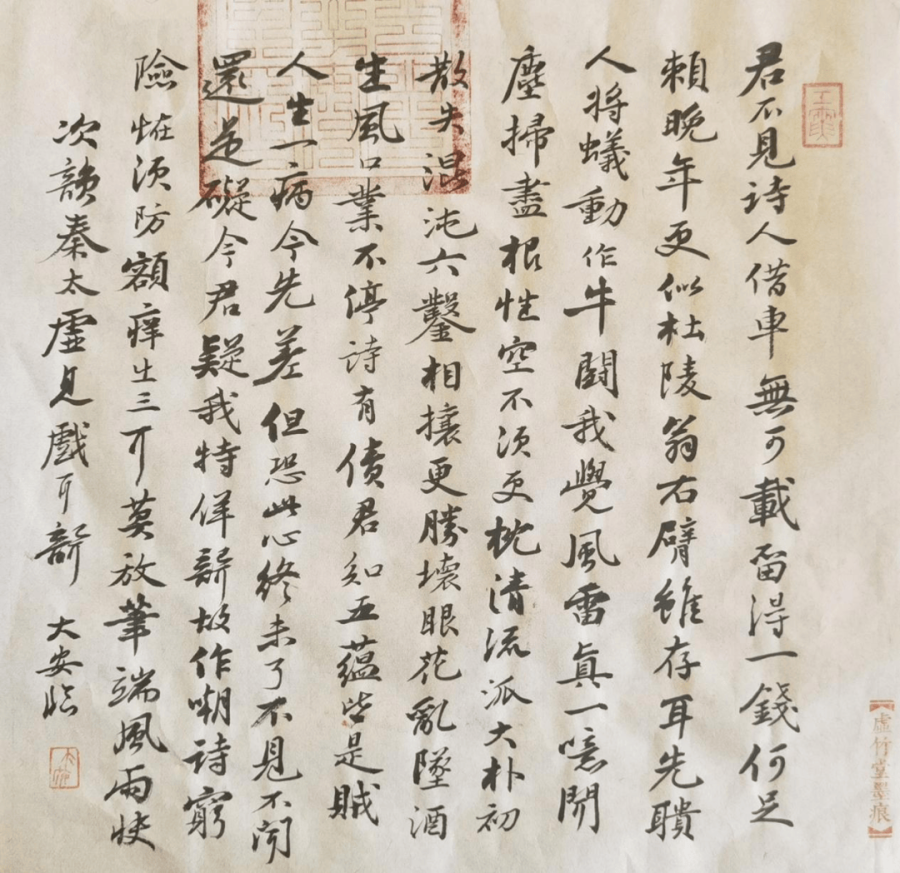 据刘银安讲,这些印章多来自名家的制刻。好马配好鞍,他对印章很讲究。他曾送我一张字,上面居然盖了七八枚闲章;因一张字上盖了那么多印章,我觉得自己很受宠。刘银安特别看重一张字的装饰美,闲章不仅是一种装饰,更是一种文化,各种寓意、各种寄托都在章子里边,他会因人因字,下墨落印。
